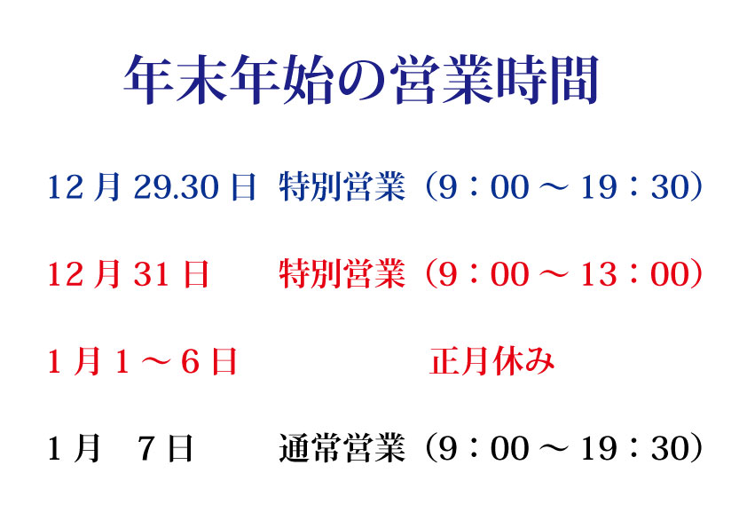 年末年始の営業についていたします