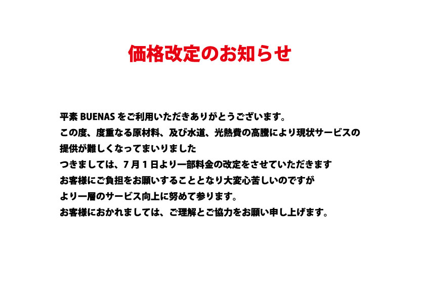 一部料金の改定についていたします